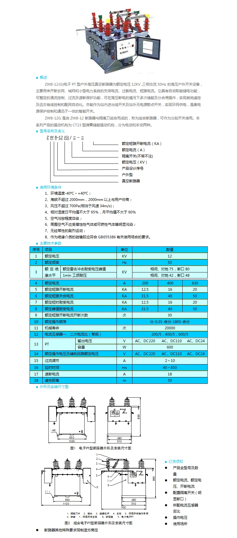 ZW8-12(G)電子PT型戶外高壓真空斷路器